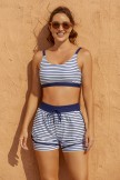 Le haut de bikini sportif à larges bretelles et à taille haute à rayures bleues est doté d'un haut de bikini classique avec un col carré confortable et des bretelles réglables. Patcher un short taille haute avec ceinture élastique partage le même motif avec le haut pour un look de plage parfait.
