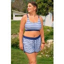 Ensemble de bikini plus size à bretelles réglables rayées avec top taille haute et culotte short